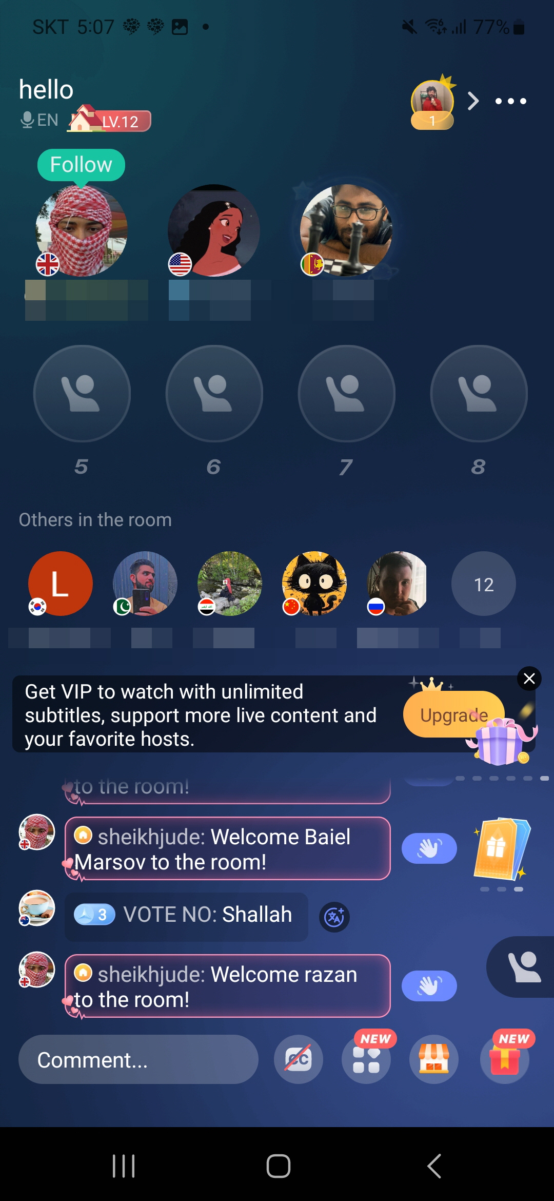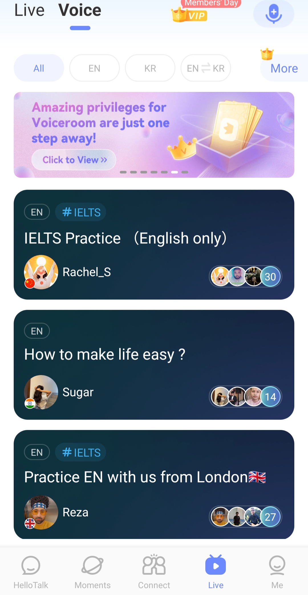 At the early step, I can choose your preferred languages. Based on my priority on this, I will match and meet with my friends in my preferred languages. Of course, it can be freely changed by my choice.
