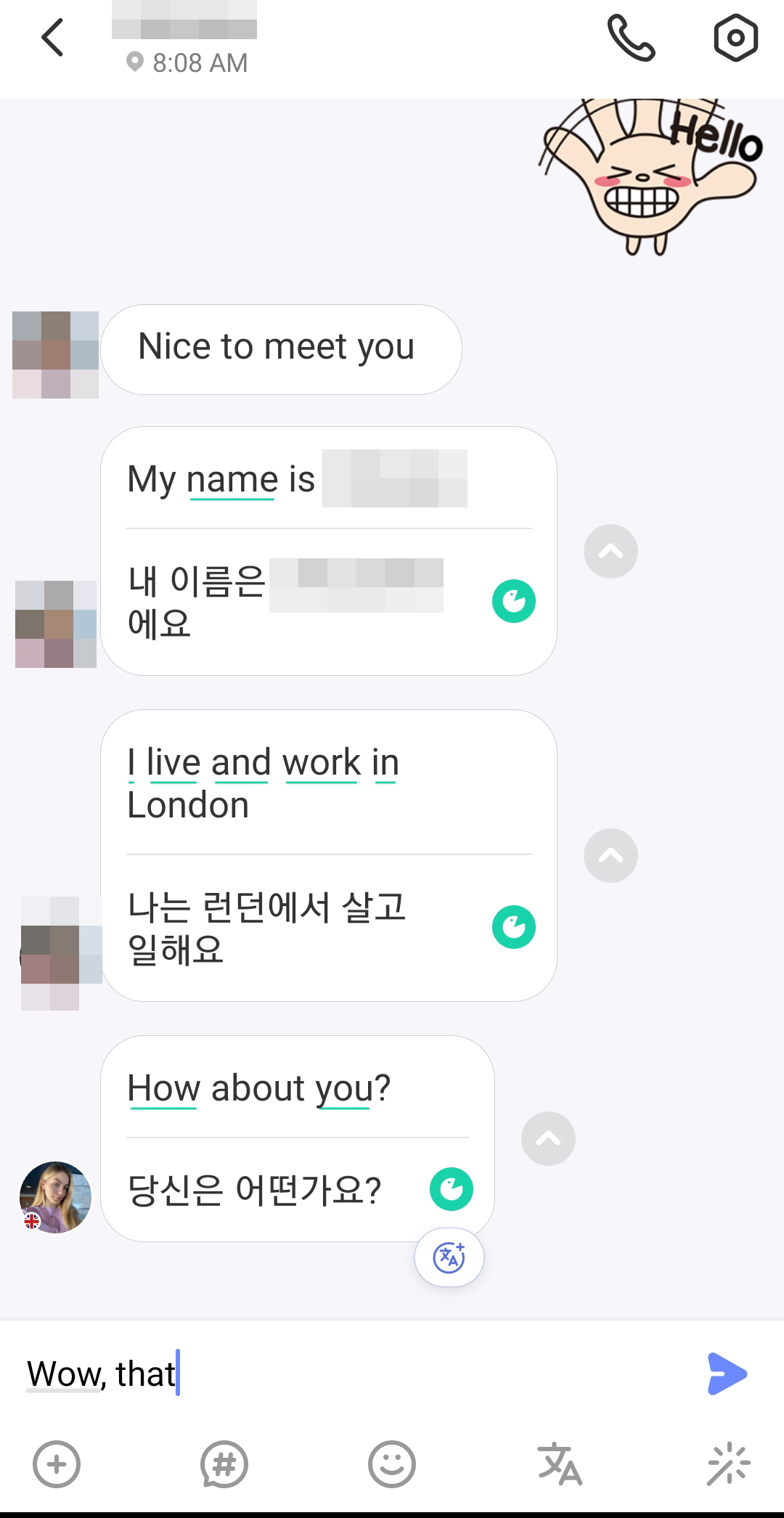 Also, chatting is also available in Tandem, so I can freely chat with them, and translate any chat message into my preferred languages so natural continuous chat is possible here.